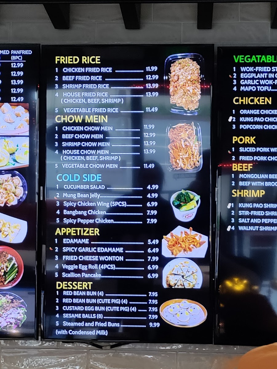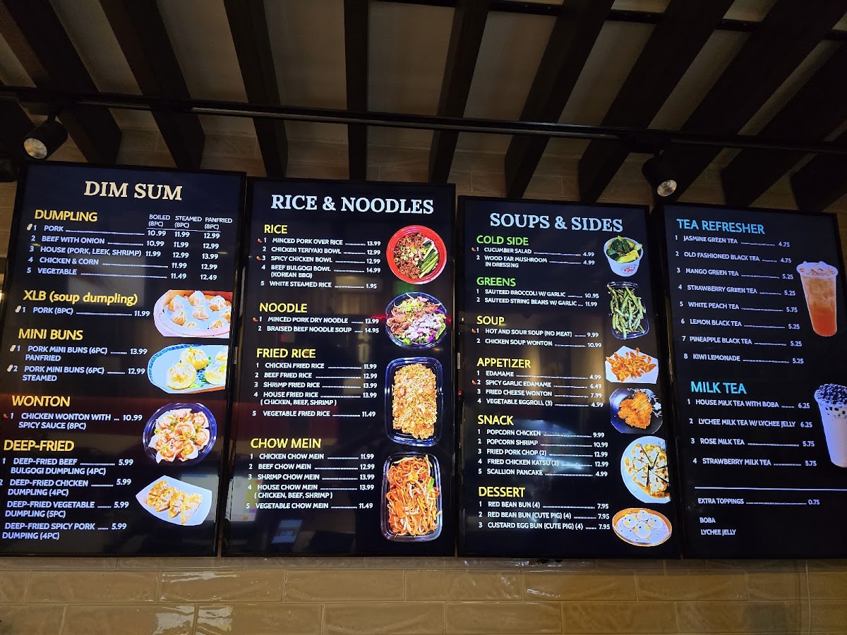 Highlights include items like the tender Pork Juicy Xiao Long Bao, the playful Steamed Custard Egg Buns shaped like cute pigs, and well-seasoned Chicken Wontons with Spicy Sauce. Alongside these, staple dishes such as House Chow Mein, Shrimp Fried Rice, and Braised Beef Noodle Soup offer heartier options that fit nicely into a relaxed, welcoming atmosphere.